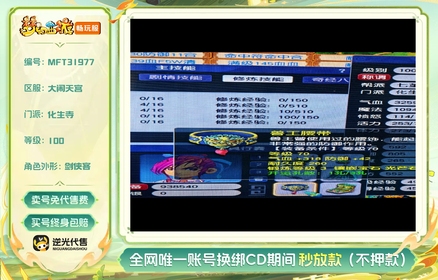 等级:100 | 龙宫,盘丝洞,魔王寨,化生寺,天宫 | 无换绑CD | 180天尊享特权 | 【逆光代售卖号0手续费】【买号找回永久包赔】