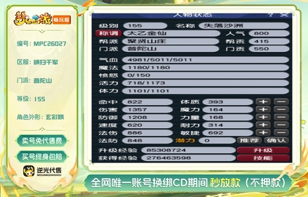 总经验:39万 | 等级:155 | 普陀山 | 无换绑CD | 180天尊享特权 | 女 | 【逆光代售卖号0手续费】【买号找回永久包赔】