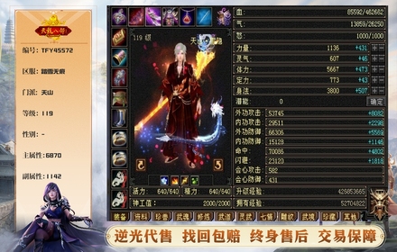 天山 | 等级:119 | 主属性:6870 | 副属性:1142 | 主冰攻 | VIP4 | 畅游账号