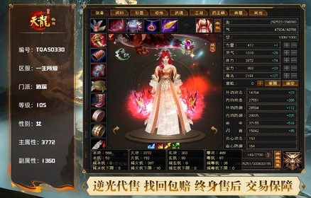 逍遥 | 等级:105 | 主属性:3772 | 副属性:1360 | 女 | 主火攻