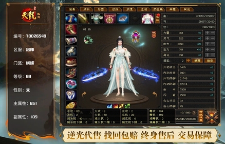 天龙 | 等级:69 | 主属性:2169 | 副属性:2139 | 男 | 主玄攻