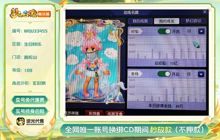总经验:120000万 | 等级:109 | 普陀山 | 存在换绑CD | 180天尊享特权 | 女 | 【逆光代售卖号0手续费】【买号找回永久包赔】