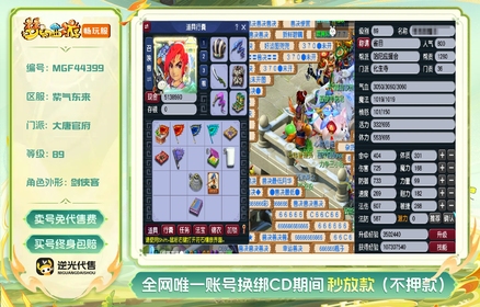 总经验:9999999万 | 等级:89 | 五庄观,盘丝洞,化生寺,普陀山,大唐官府 | 无换绑CD | 30天尊享特权 | 【逆光代售卖号0手续费】【买号找回永久包赔】