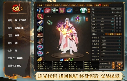 捡漏秒价出,没时间玩了,7件时装幻视,暴力高会心抗天山,侠士副本第一梯队,有双十附体,悟十红龙,上手就能玩。