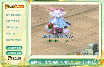 总经验:140000万 | 等级:109 | 盘丝洞 | 无换绑CD | 180天尊享特权 | 女 | 【逆光代售卖号0手续费】【买号找回永久包赔】