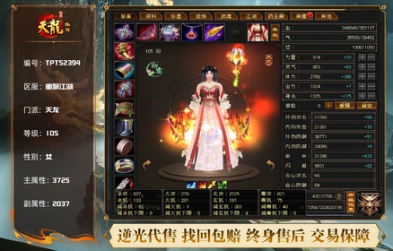 19颗5级宝石10颗5级属性石头,雕文全部7级,带30宝宝龙,一个群技能书,还有很大提升