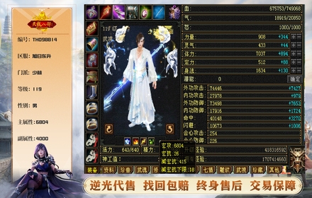 少林 | 等级:119 | 主属性:6804 | 副属性:4000 | 男 | 主玄攻 | VIP3 | 畅游账号
