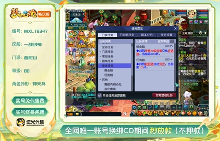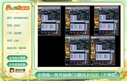 等级:100 | 五庄观,盘丝洞,普陀山 | 无换绑CD | 180天尊享特权 | 【逆光代售卖号0手续费】【买号找回永久包赔】