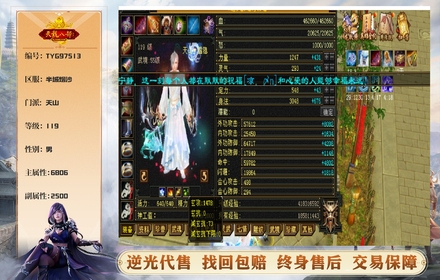 天山 | 等级:119 | 主属性:6806 | 副属性:2500 | 男 | 主冰攻 | VIP5 | 畅游账号