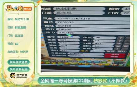 总经验:10000万 | 等级:69 | 五庄观 | 无换绑CD | 180天尊享特权 | 男 | 【逆光代售卖号0手续费】【买号找回永久包赔】