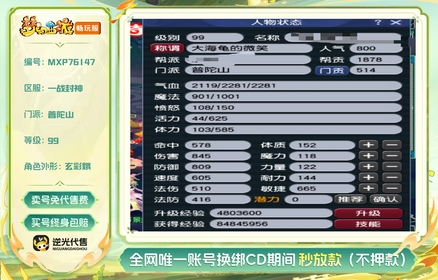 总经验:33000万 | 等级:100 | 五庄观,化生寺 | 无换绑CD | 180天尊享特权 | 【逆光代售卖号0手续费】【买号找回永久包赔】