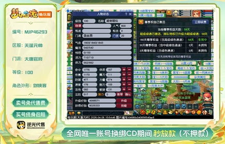 总经验:22000万 | 等级:100 | 五庄观,普陀山 | 无换绑CD | 30天尊享特权 | 男 | 【逆光代售卖号0手续费】【买号找回永久包赔】