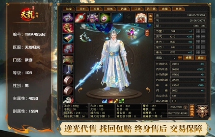 不还价了,已经超级低了,三修天龙,输出拉满,总属性6200,仓库里面还有好多秘银,号品也很好,装备都是自己做的7.8星,因没空玩了,低价出了