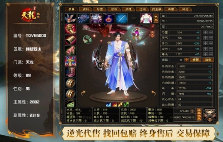 天龙 | 等级:89 | 主属性:2802 | 副属性:2319 | 男 | 主玄攻