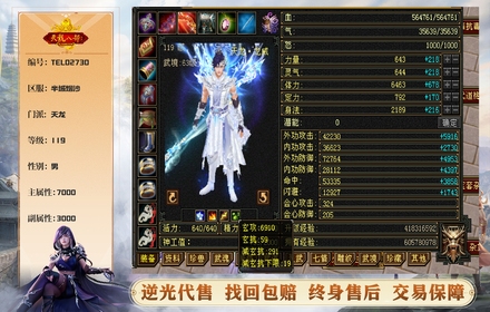 天龙 | 等级:119 | 主属性:7000 | 副属性:3000 | 男 | 主玄攻 | VIP6 | 畅游账号