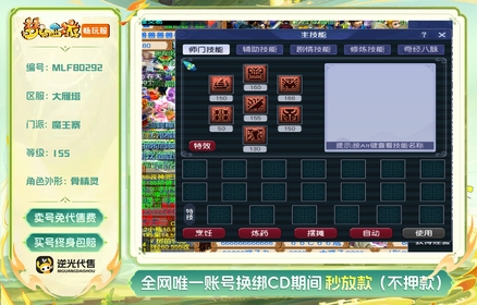 总经验:420000万 | 等级:155 | 魔王寨 | 无换绑CD | 30天尊享特权 | 女 | 【逆光代售卖号0手续费】【买号找回永久包赔】