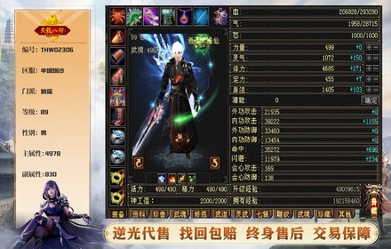 满5,强化9,雕文8,属性4000+,减毒抗400+,命中3万6,内功4万3.带所有宝宝,白菜价