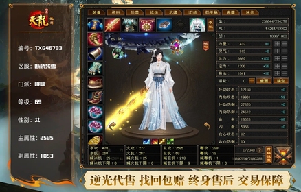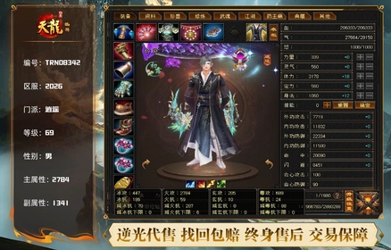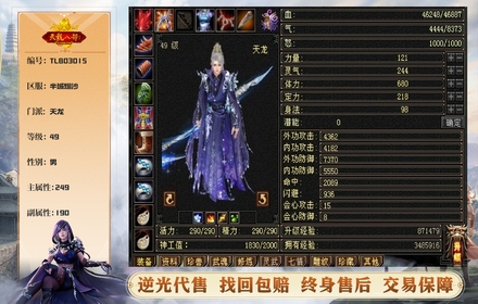 天龙 | 等级:49 | 主属性:249 | 副属性:190 | 男 | 主玄攻 | VIP4 | 畅游账号