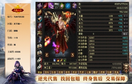 明教 | 等级:119 | 主属性:6506 | 副属性:1183 | 男 | 主火攻 | VIP5 | 畅游账号