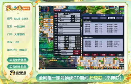 总经验:60000万 | 等级:109 | 五庄观,盘丝洞,魔王寨,化生寺,大唐官府 | 无换绑CD | 180天尊享特权 | 男 | 【逆光代售卖号0手续费】【买号找回永久包赔】