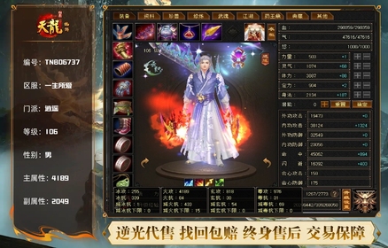 逍遥 | 等级:106 | 主属性:4189 | 副属性:2049 | 男 | 主火攻