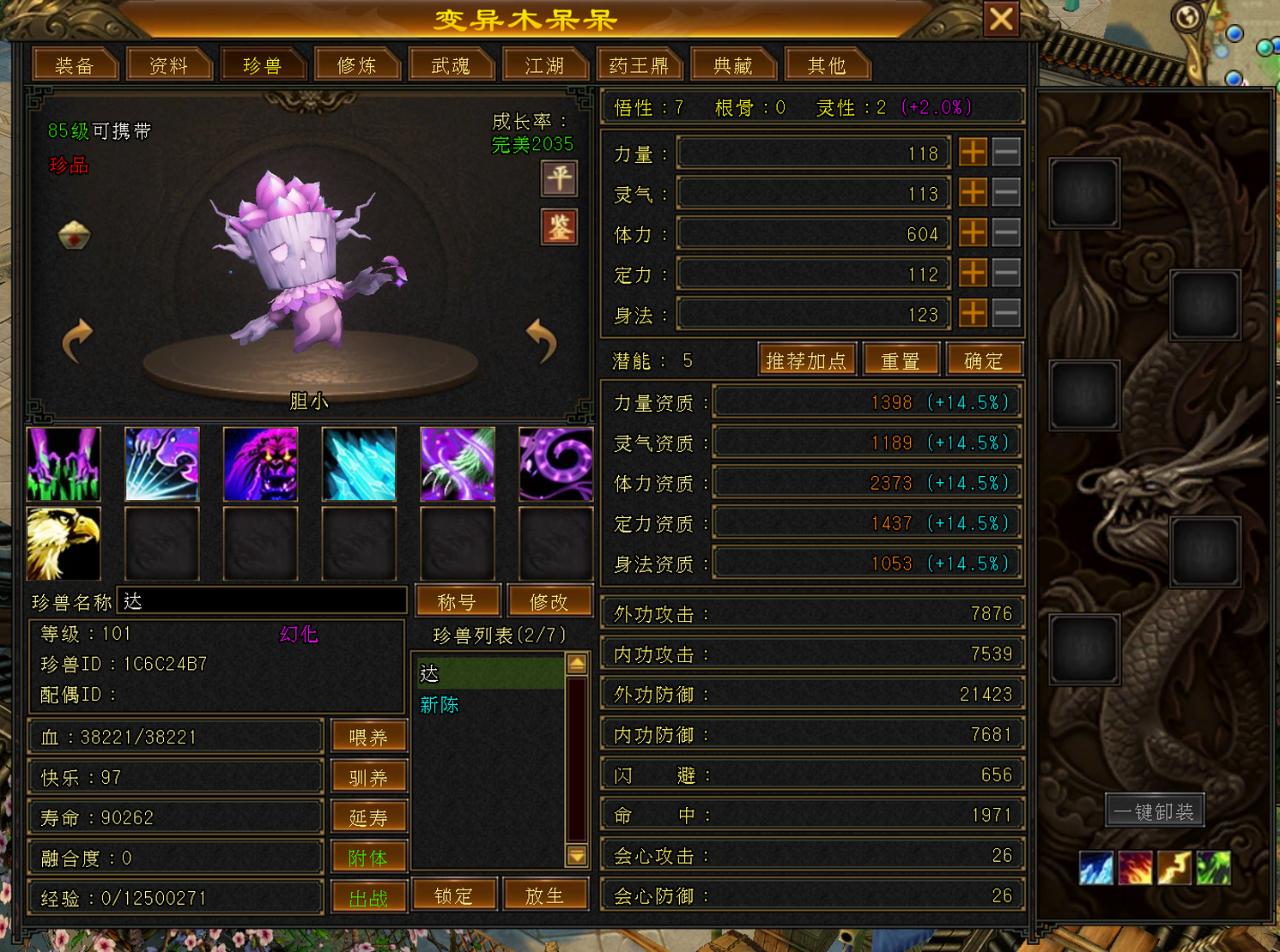 3个5体其他4体4属 主属性2100 副属性2300 手工小毕业 大完美武魂已开6孔 带4750三十成品附体宝宝 便宜出可刀
