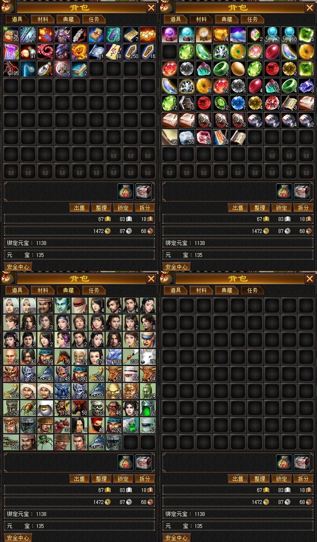 顶级全五带6四套抗性其中毒抗4级在背包里,3.9万命中,别拿同属性2万多命中的号跟我比,30附体全满级技能已做顶变剑影虎皮肤一个宝宝都2000多,双十高血宝宝七星神器 暗器洗满,装备除了帽子衣服项链全是八星,已经是底价求有缘人直接收了。