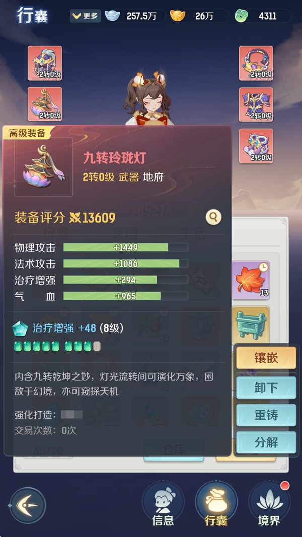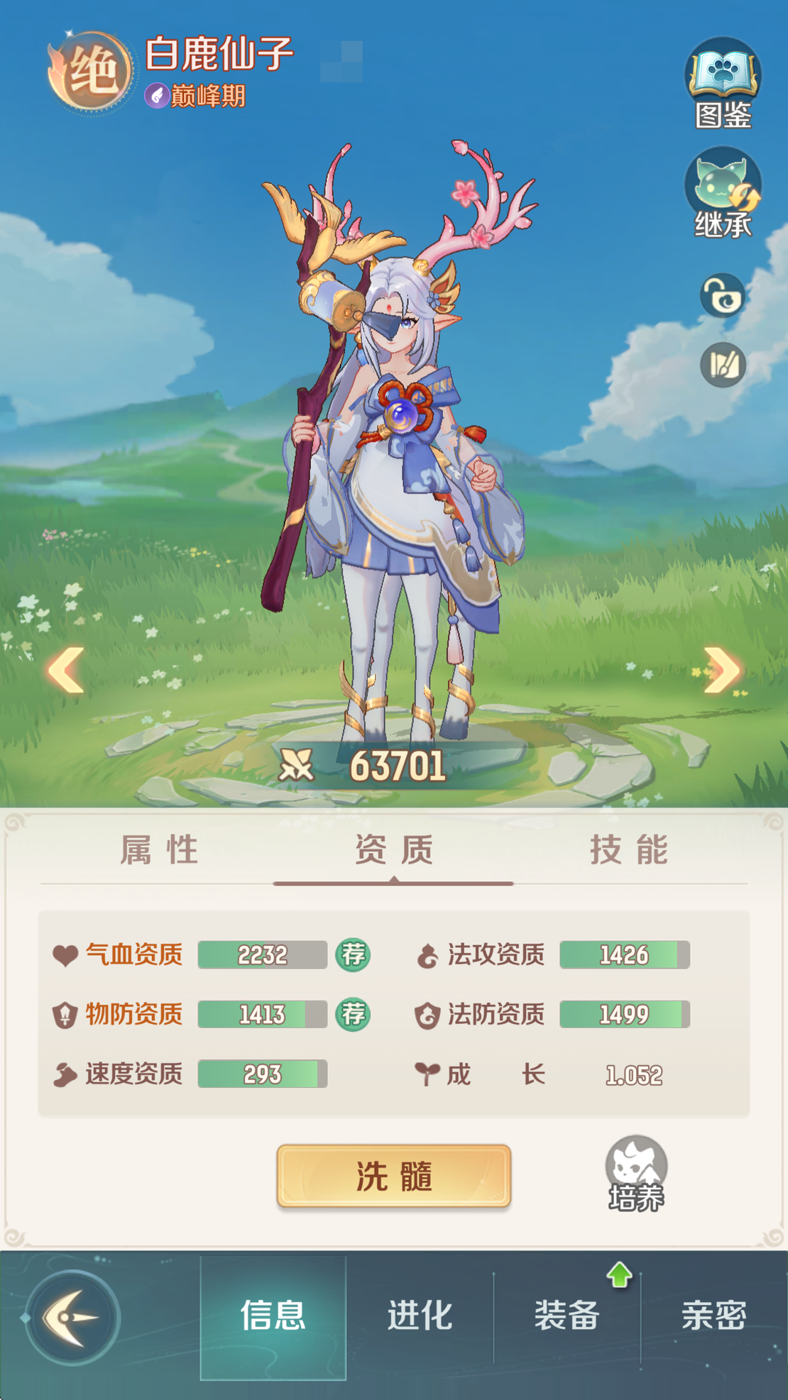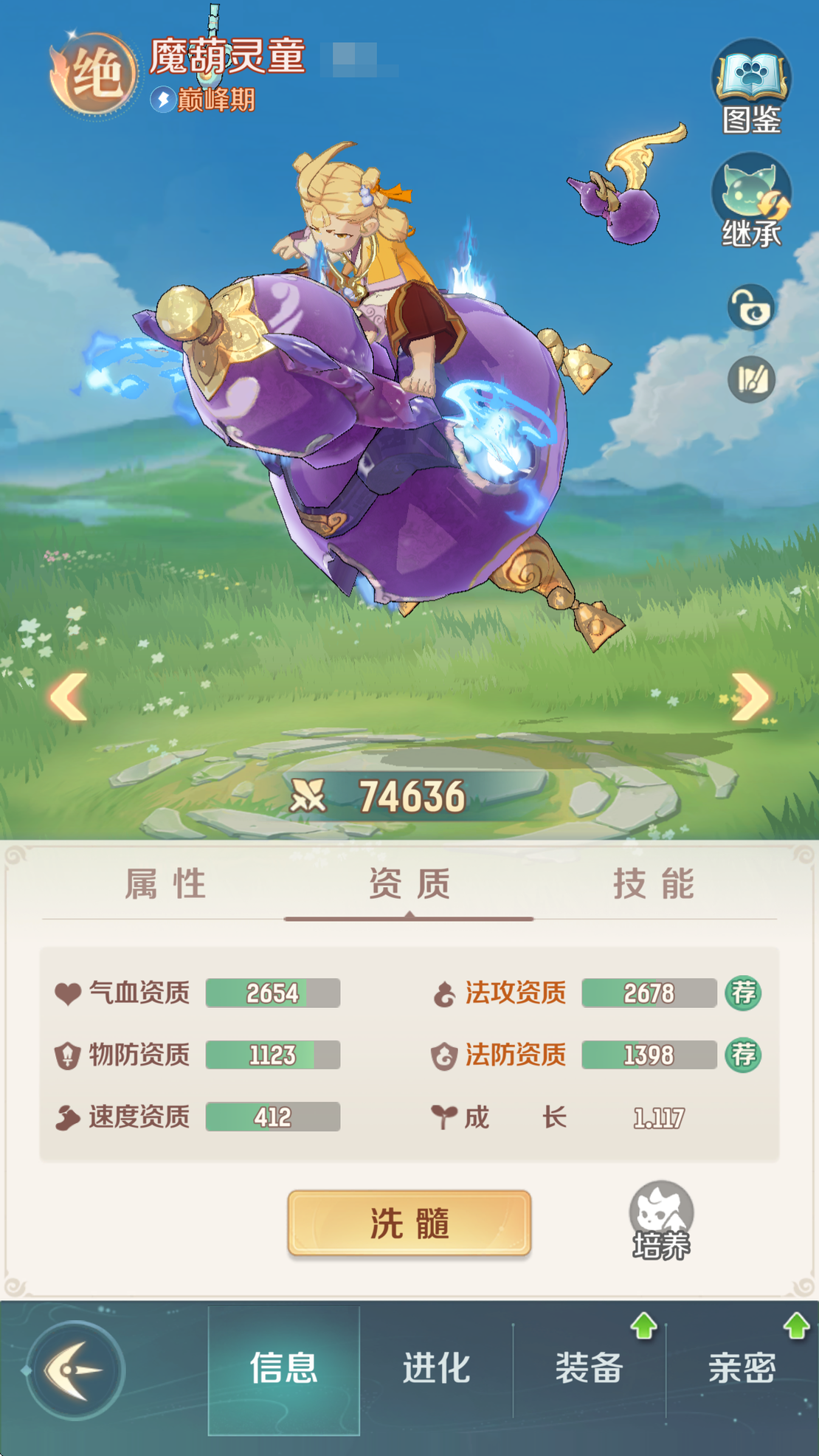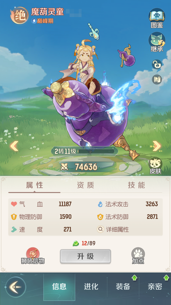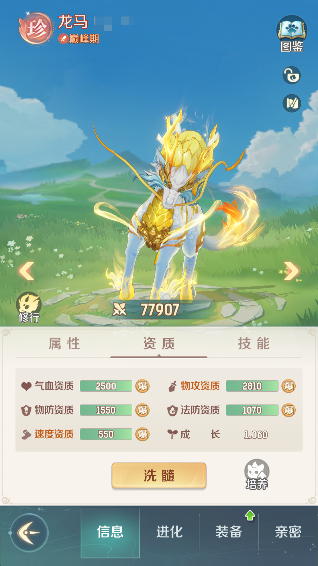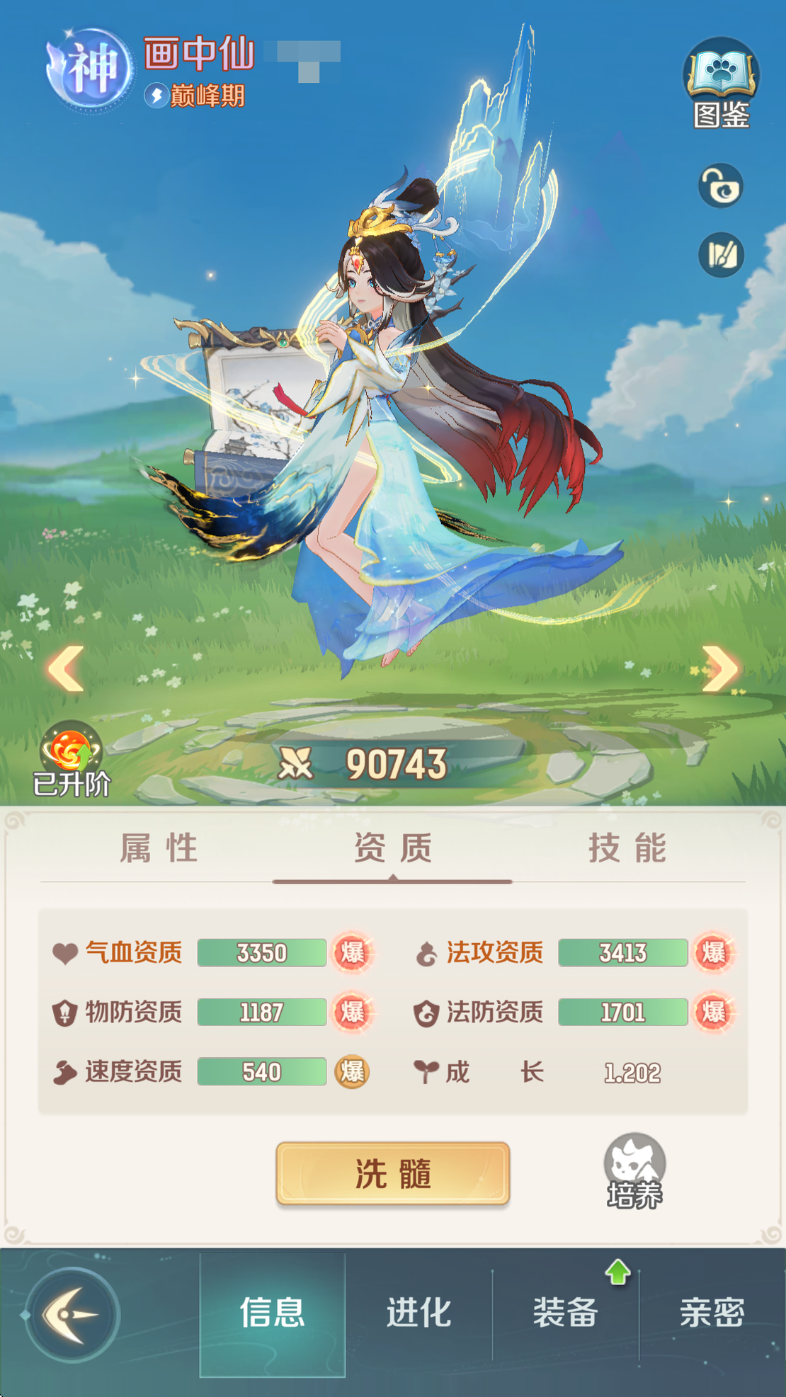 【LLJ59323】 | 等级:106 | 仙器:1 | 神兽数量:1 | 角色评分:99999 | 珍兽数量:2 | 地府 | 女 | 画中仙 | 龙马、貔貅