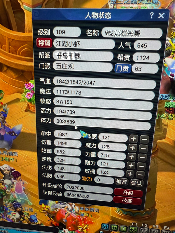 【MAK54033】 | 等级:109 | 网易邮箱 | 男 | 五庄观 | 鸟翔阵、天覆阵、风扬阵