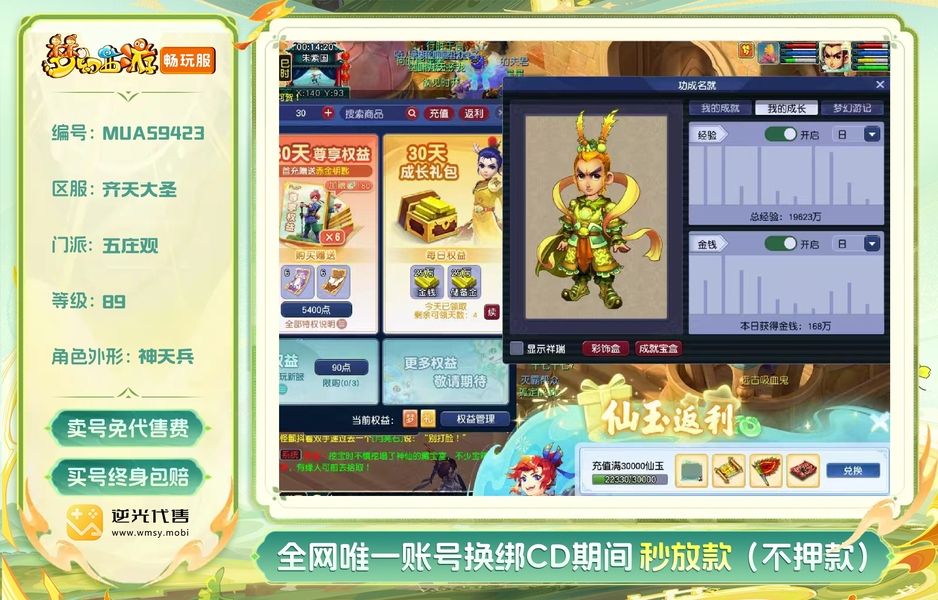 上班族没时间玩了,来人好好善待此号,仓库还有很多东西,100环等开奖,目前89,技能全满,每天都拉满的每天都拉满,总经验2E,身上还有4500万经验,5J帮派1900帮贡,炼药目前65可以点到75,想点满修联系帮主随时可以包资材一天点满一个,可随时人脸,猎术2随时可点到15马上开95,适合单开可跑环抓吸血鬼卖三药
