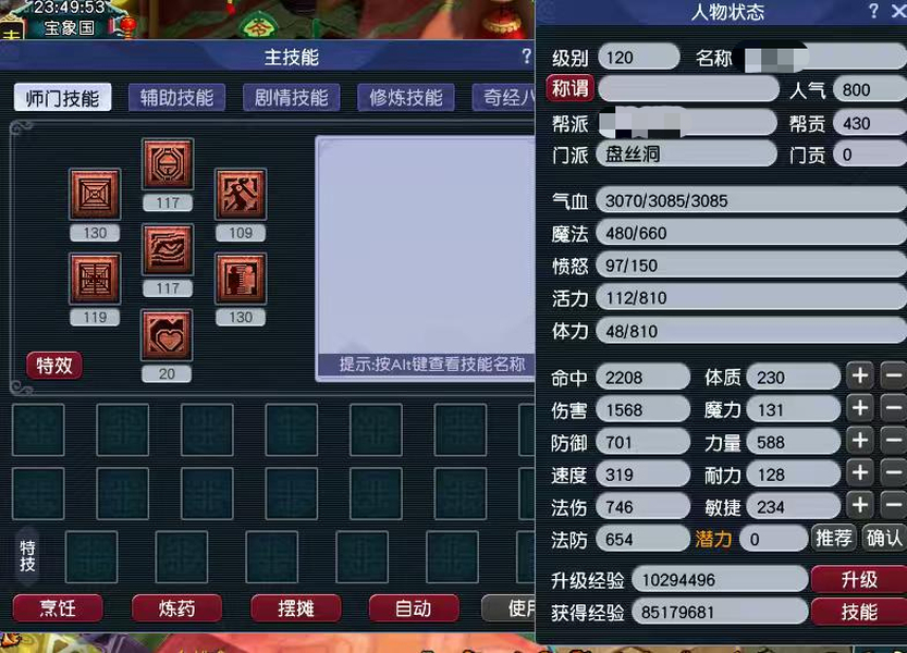 120盘丝,打造100,防御符130,法修13,技能经验可看图!号上带100极品爪刺,11月12日后可出售!号上除了100爪刺之外,其他都是环装,介意的慎拍!真心处理价,光武器都能卖1000多!