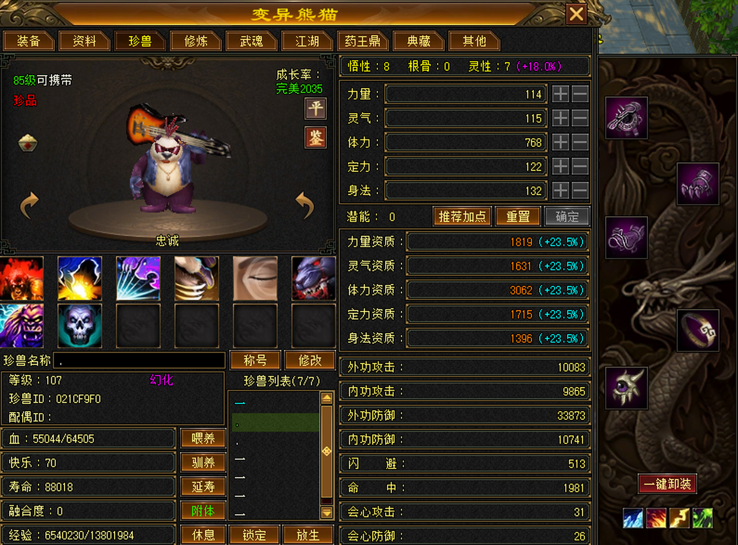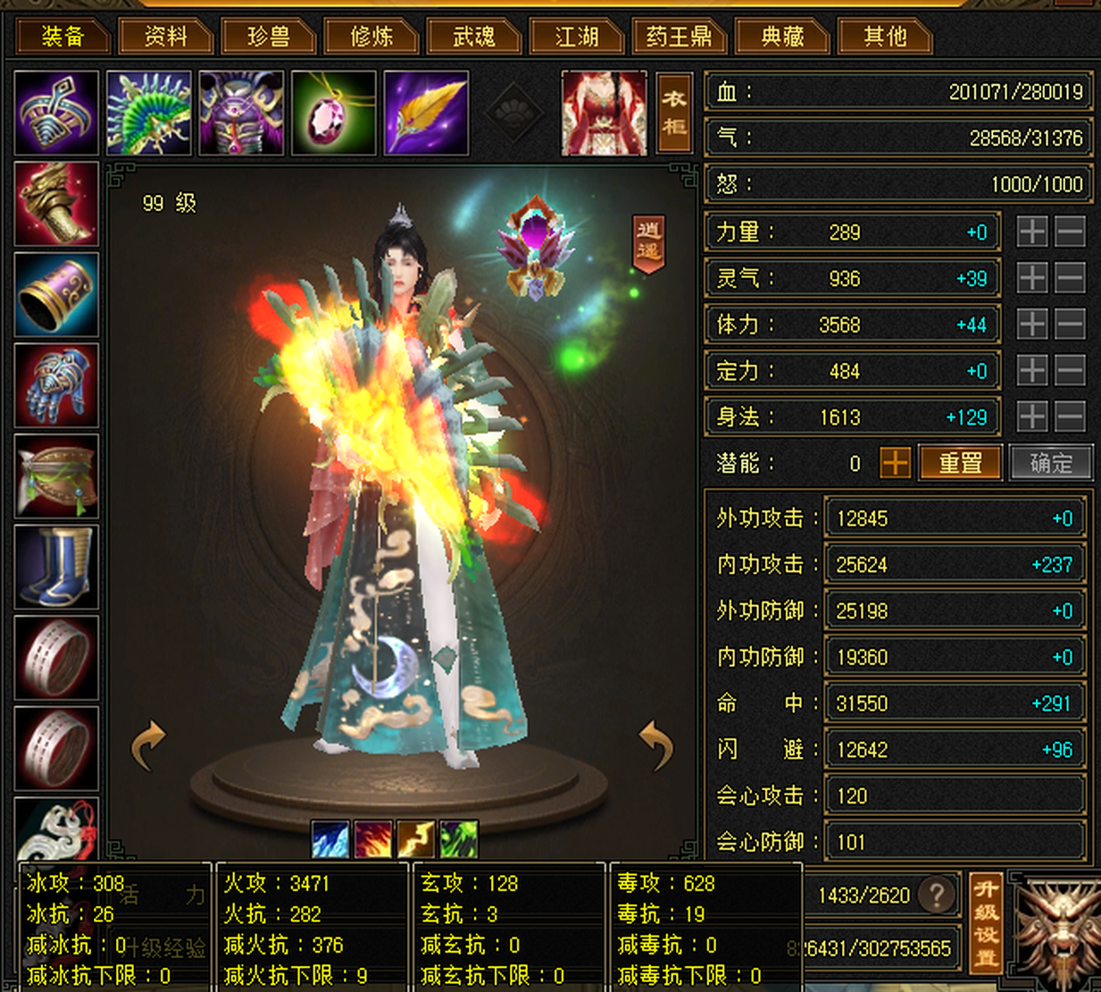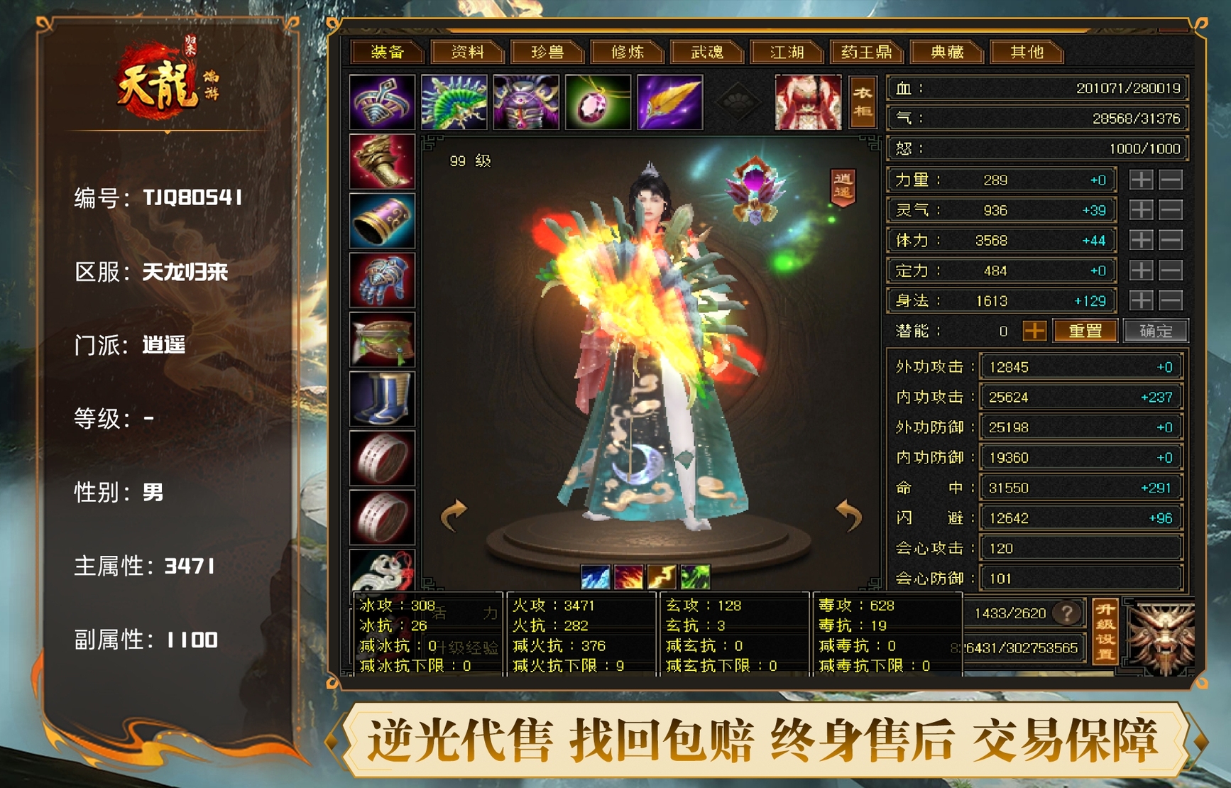 【TJQ80541】 | 等级:99 | 主属性:3471 | 副属性:1100 | 逍遥 | 男 | 主火攻