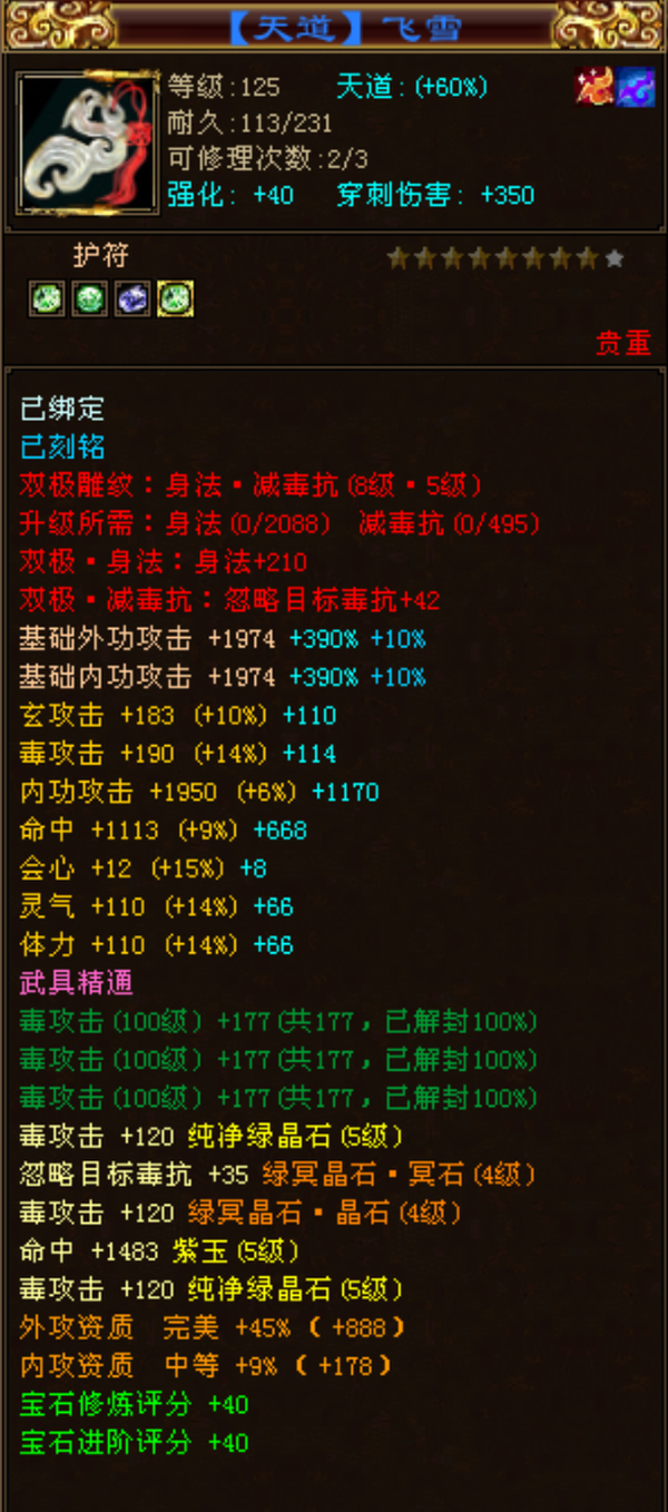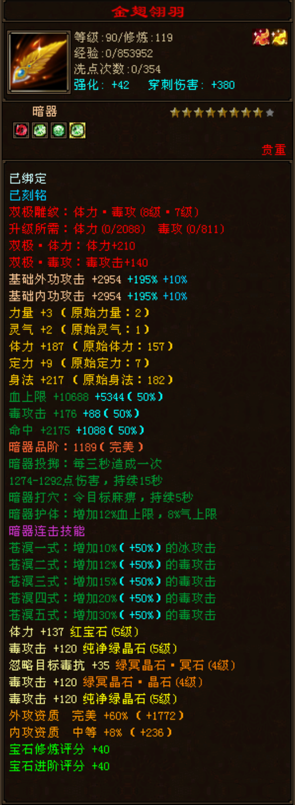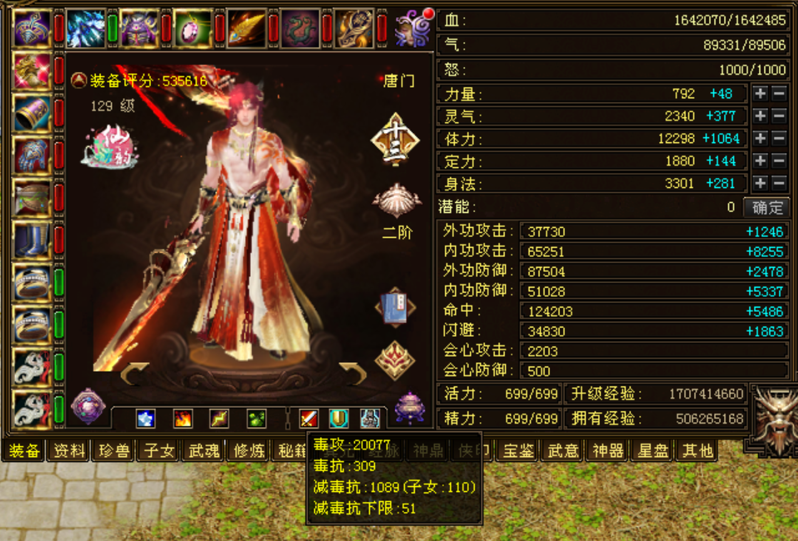 没到时间上阁子,一手号资料齐全【 门派:唐门 评分:535616 主攻属性:毒攻 主属性: 20077 副属性:7177 等级:129 】