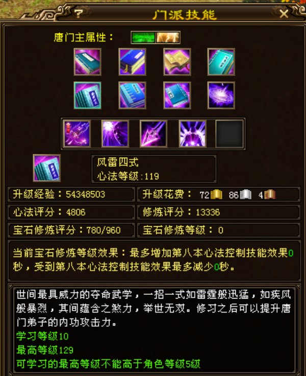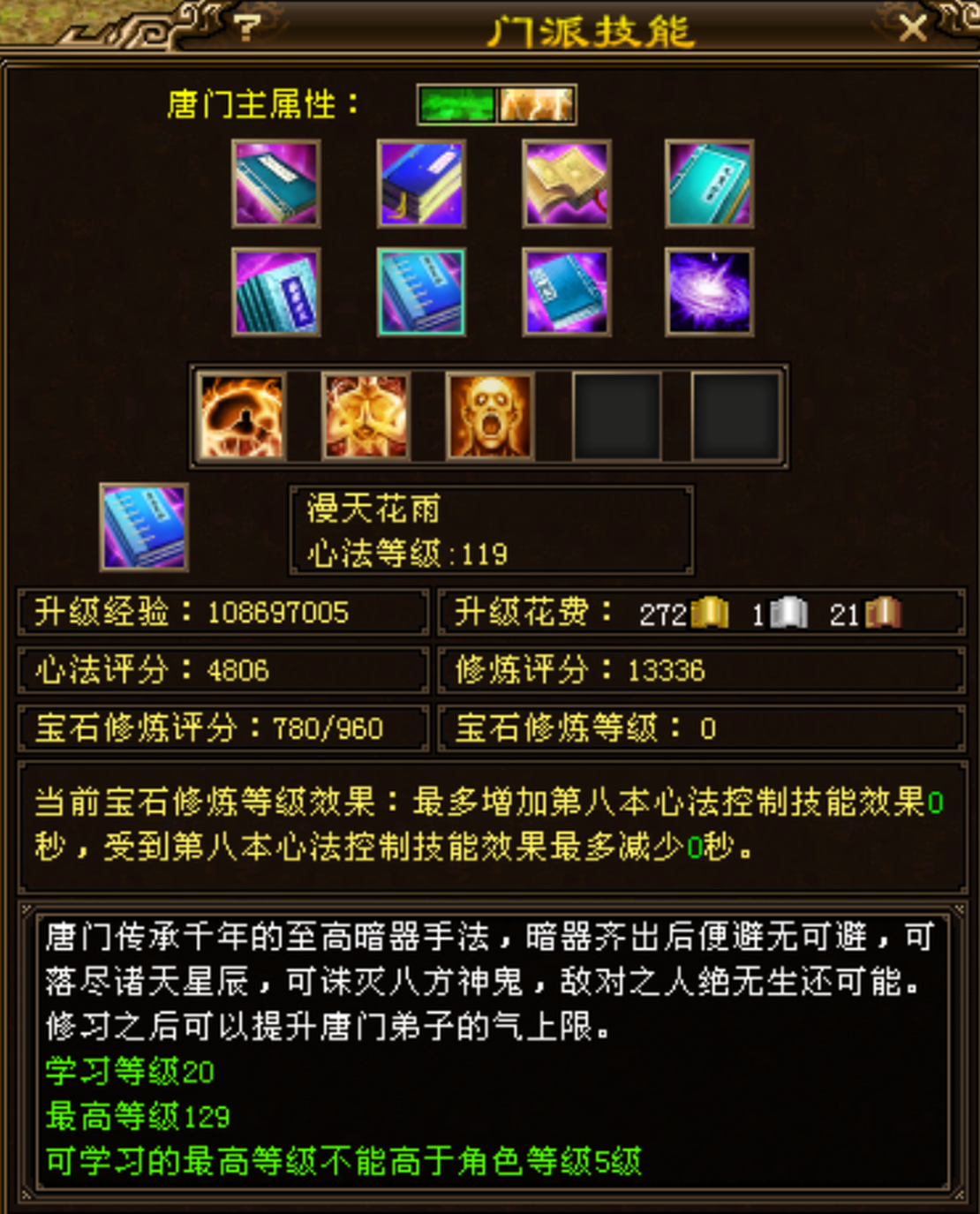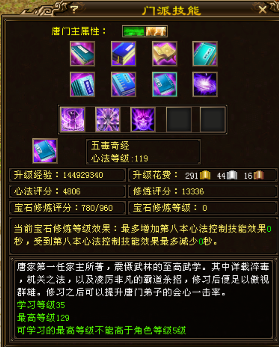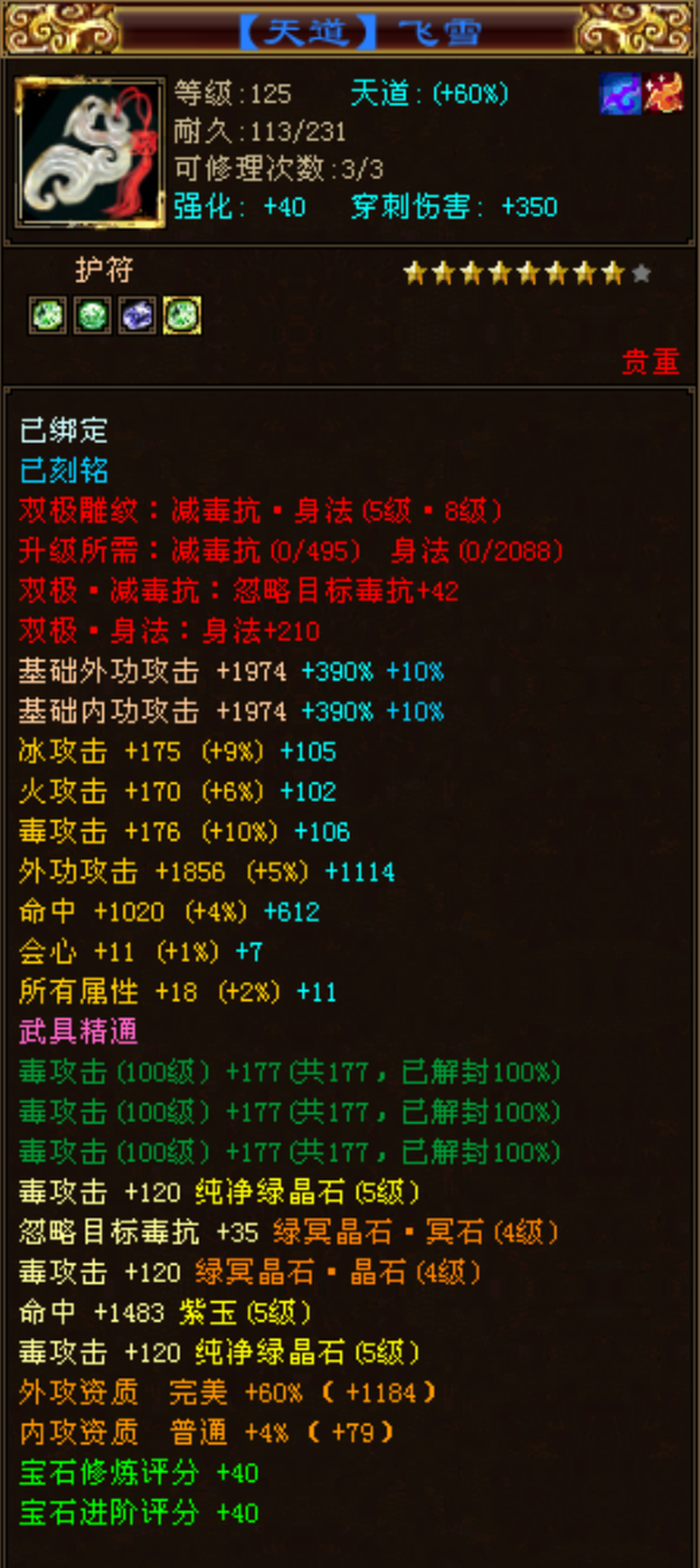 没到时间上阁子,一手号资料齐全【 门派:唐门 评分:535616 主攻属性:毒攻 主属性: 20077 副属性:7177 等级:129 】