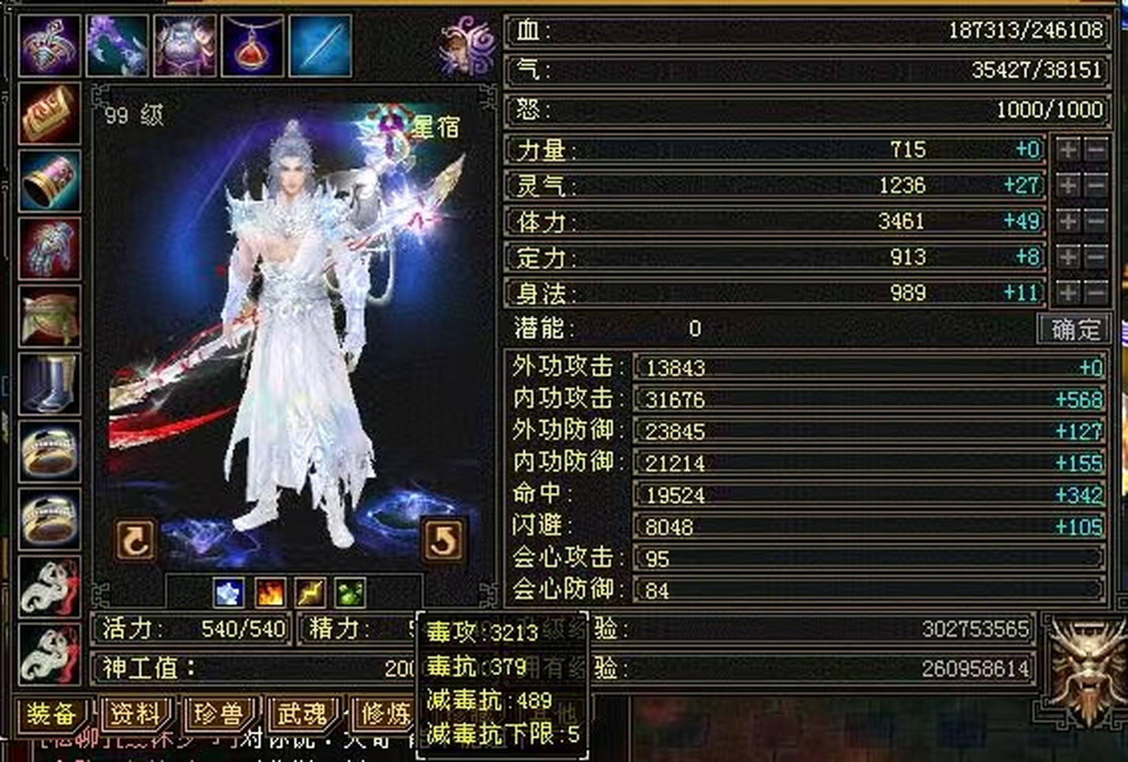 【TDJ77381】 | 主属性:3213 | 副属性:1 | 等级:99 | 星宿 | 男 | 主毒攻 | VIP5