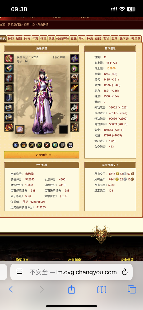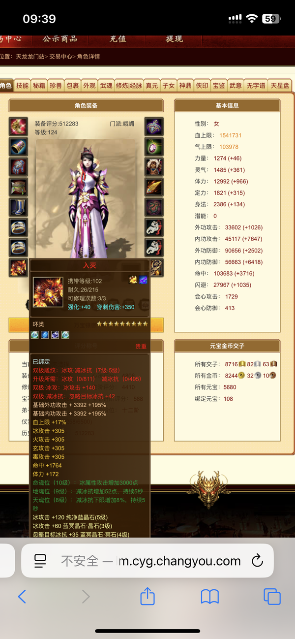 【TFA31057】 | 等级:124 | 评分:510000 | 主属性:14750 | 副属性:6000 | 穿刺伤害:4347 | 穿刺减免:2100 | 女 | 峨眉 | VIP7