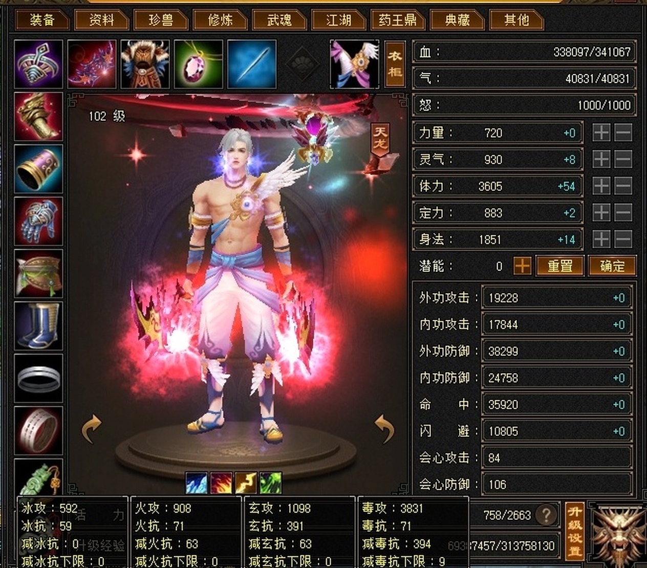 5减,5300附体全4技能,102手写词条7星神器弄了2000块,自身状态没鼎没精华,充值4万