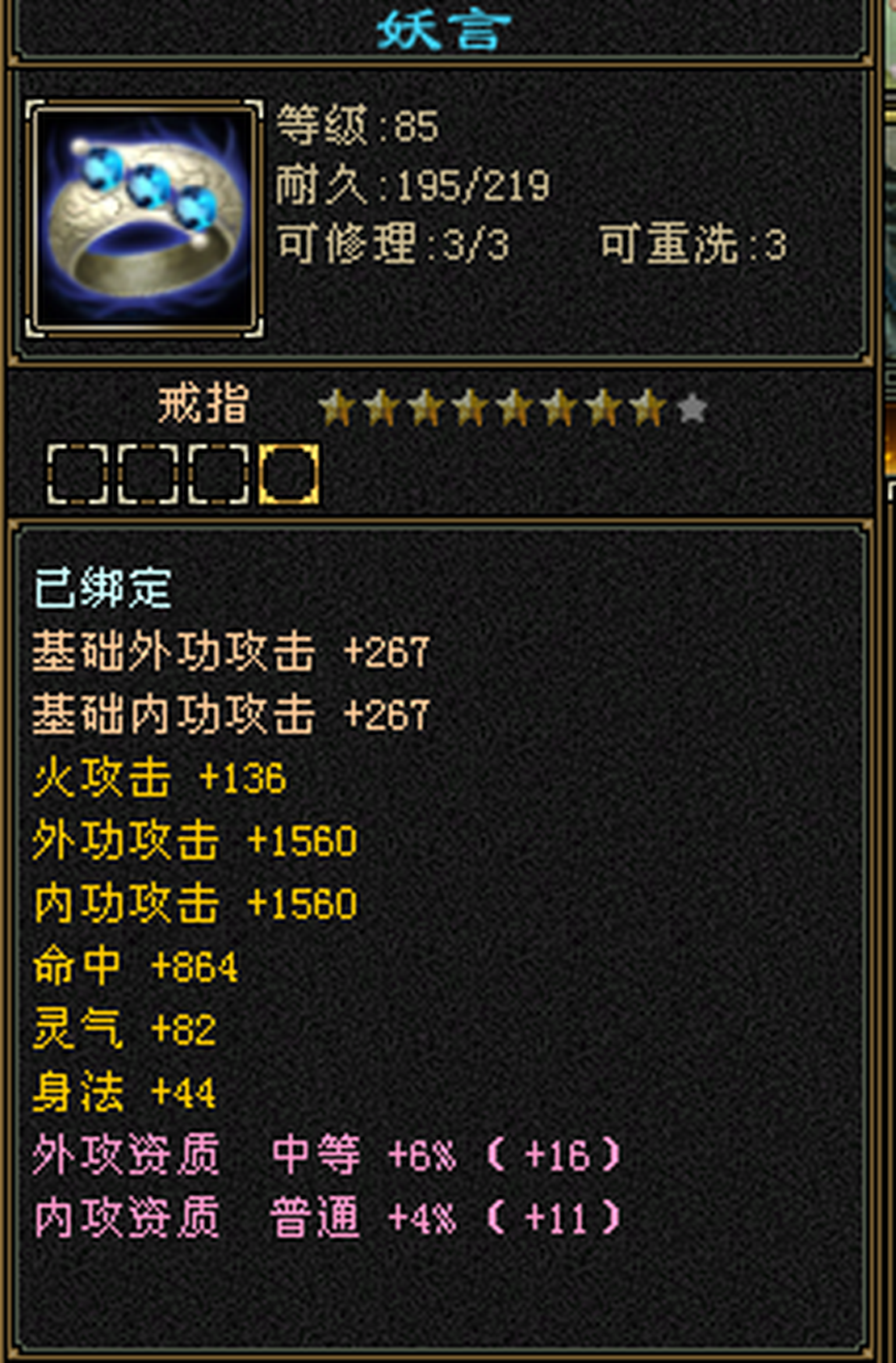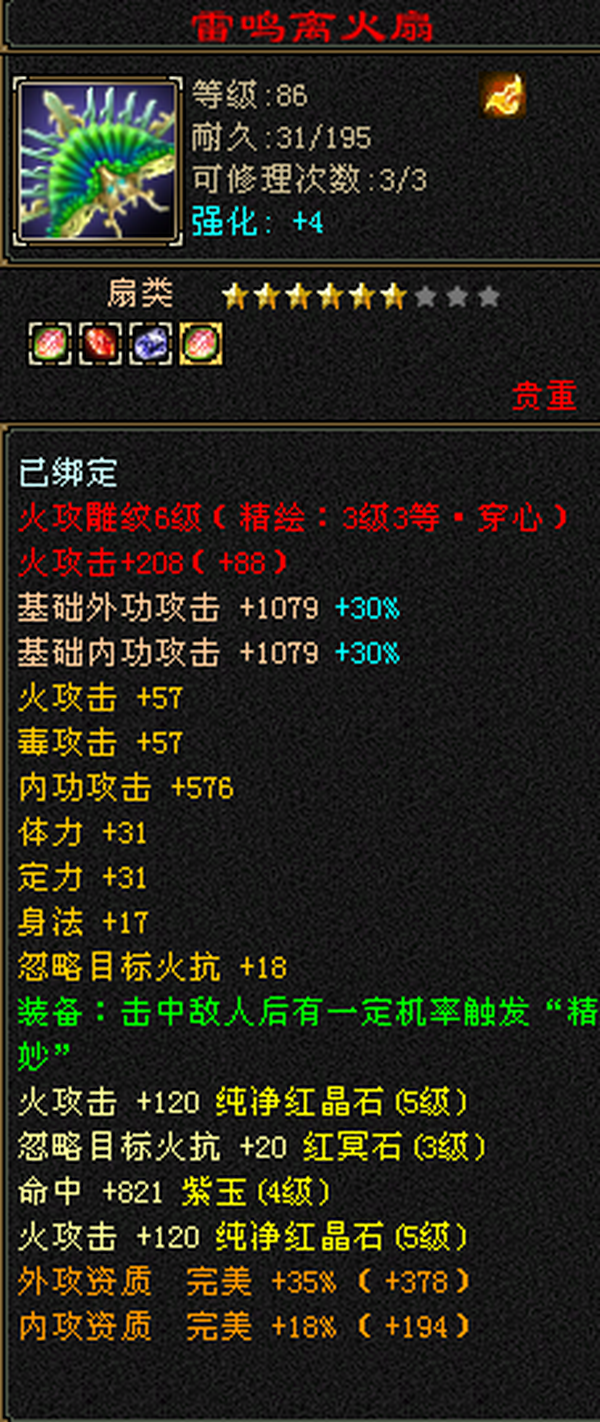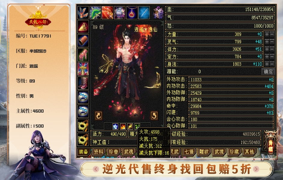 3修逍遥 总属性6000➕,永久坐骑,舞魂还有一颗石头没上 上了4800属,仓库还有一套火毒装备,换了直接4800属性➕舞魂石头4900,5000轻松上,诚心买可以谈
