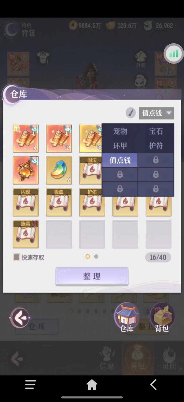 【CMQ64124】 | 神兽数:3 | 角色评分:97356 | 等级:109 | 唐门 | 孙悟空、沙神