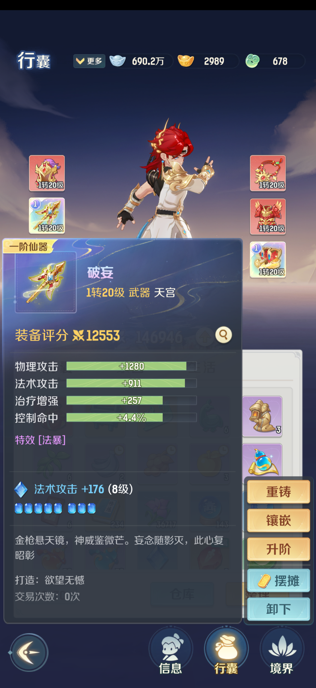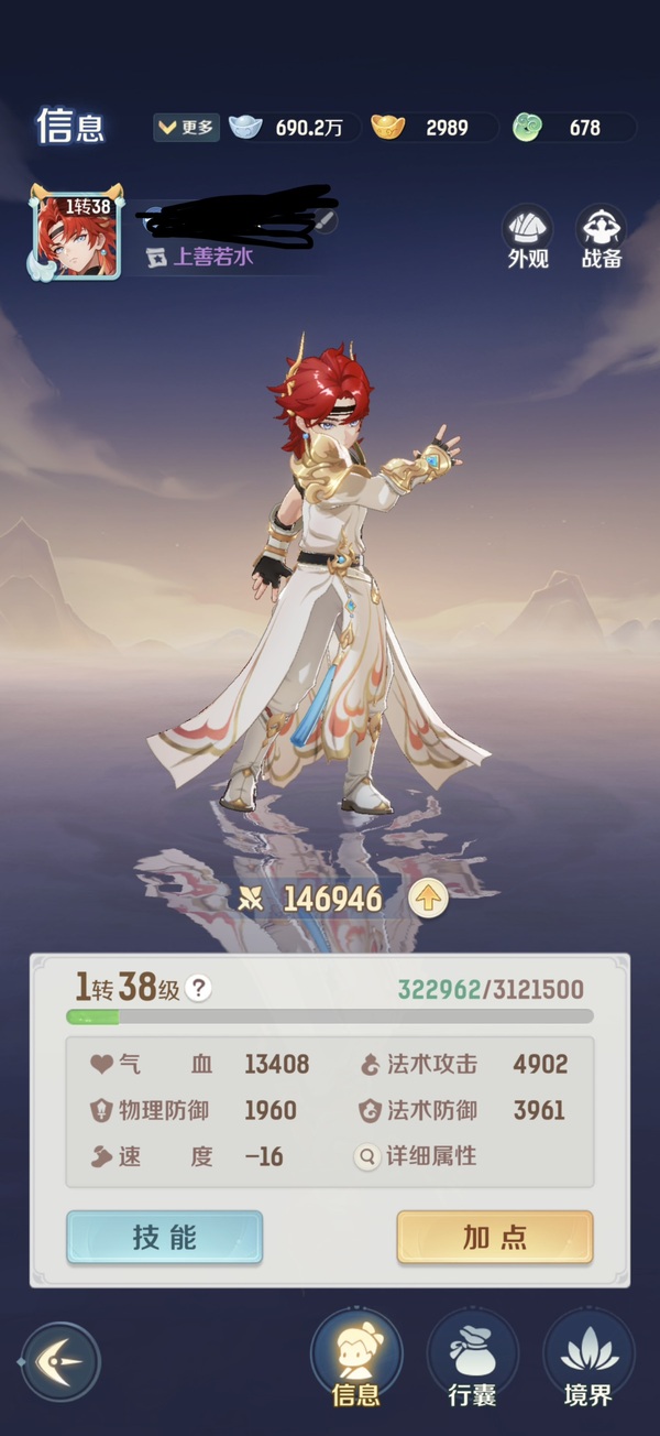 【LLS81299】 | 等级:138 | 仙器:2 | 角色评分:146946 | 神兽数量:1 | 天宫 | 男 | 精卫 | 貔貅