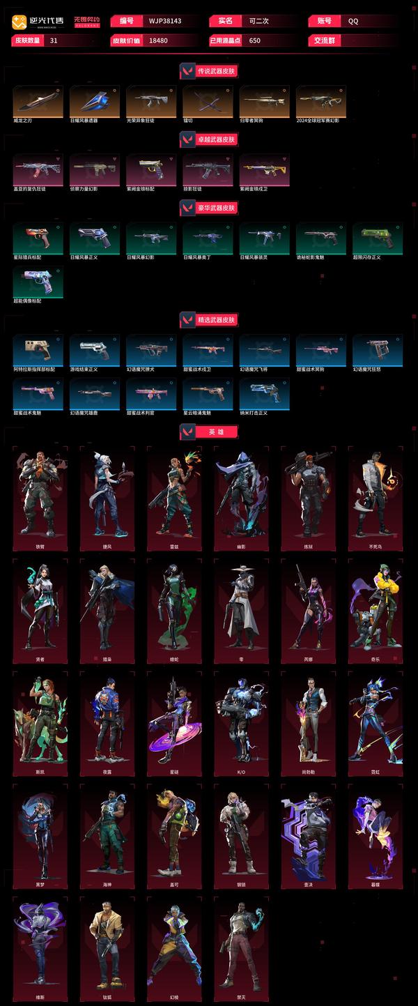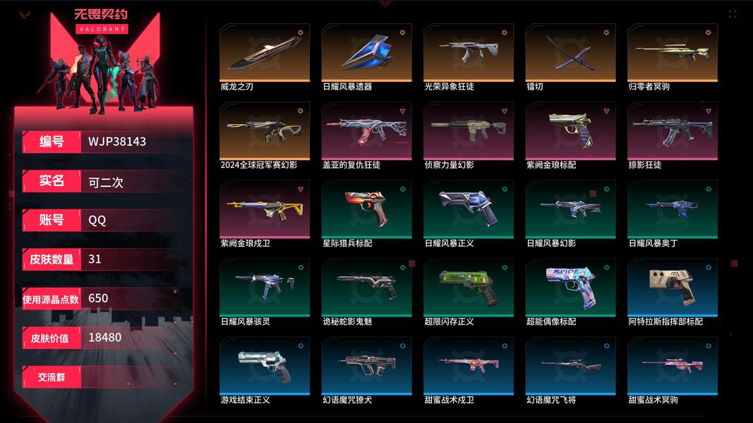 【WJP38143】 | 终极武器数量:1 | 皮肤资产价值:18480 | 卓越武器数量:5 | 传奇武器数量:6 | 归零者冥驹 | 日耀风暴遗器、镭切、威龙之刃 | 紫阙金琅戍卫 | 2024全球冠军赛幻影、侦察力量幻影 | 盖亚的复仇狂徒、光荣异象狂徒、掠影狂徒