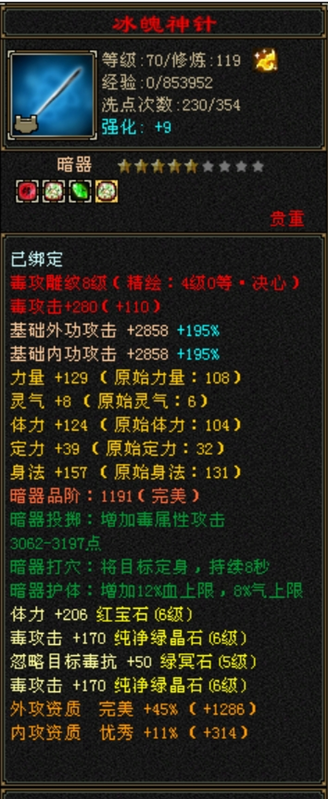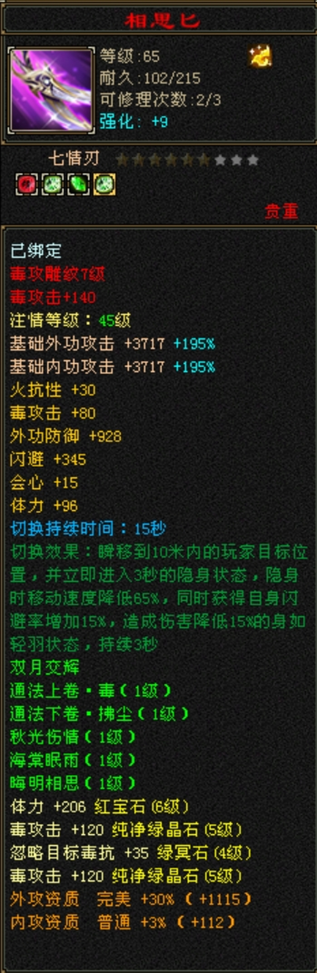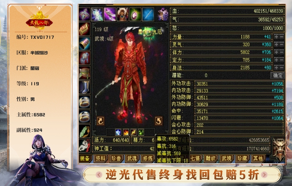 所见即所得,6655星宿,6582毒属性,带2.7万绑定元宝,5000绑定金币,5介种子,仓库东西多多,生活技能齐全,上手就玩,便宜出了。