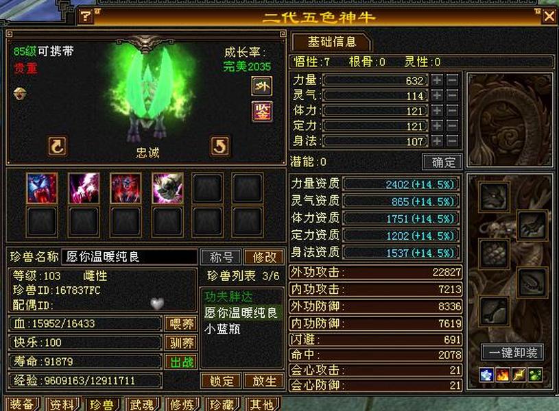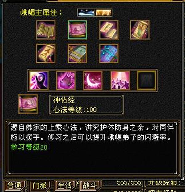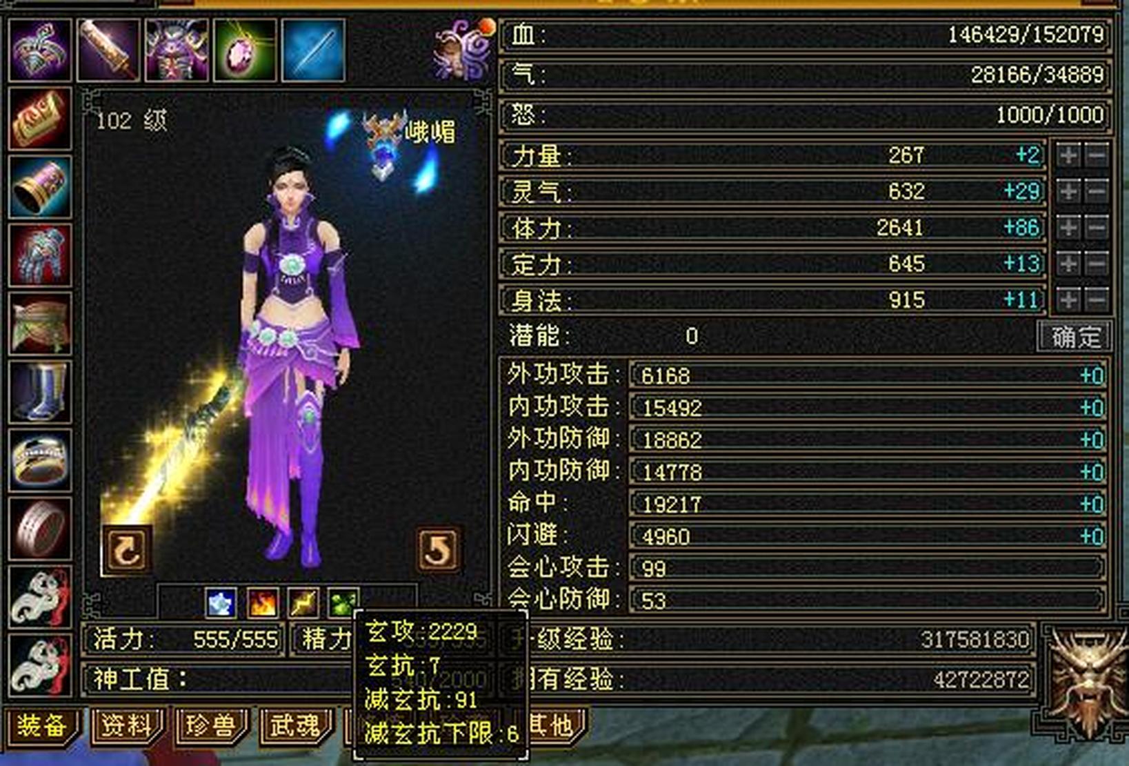 102级暴力输出峨嵋 5体力5属性攻击5雕文 2千多玄功 永久仙侣 心法100级