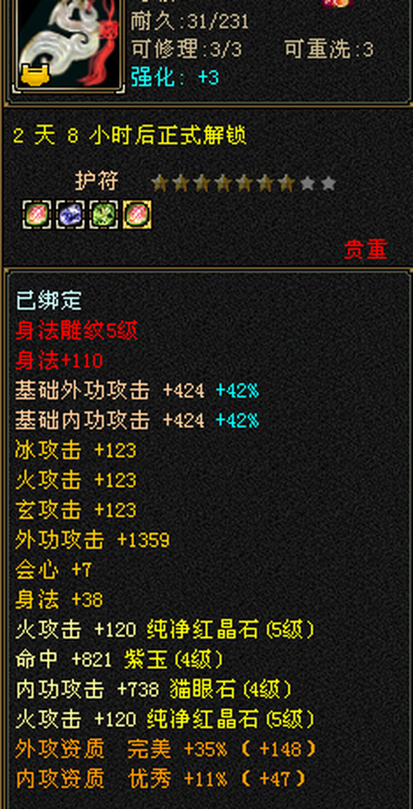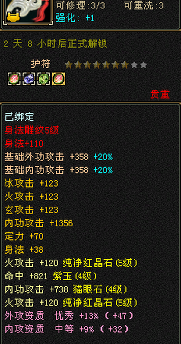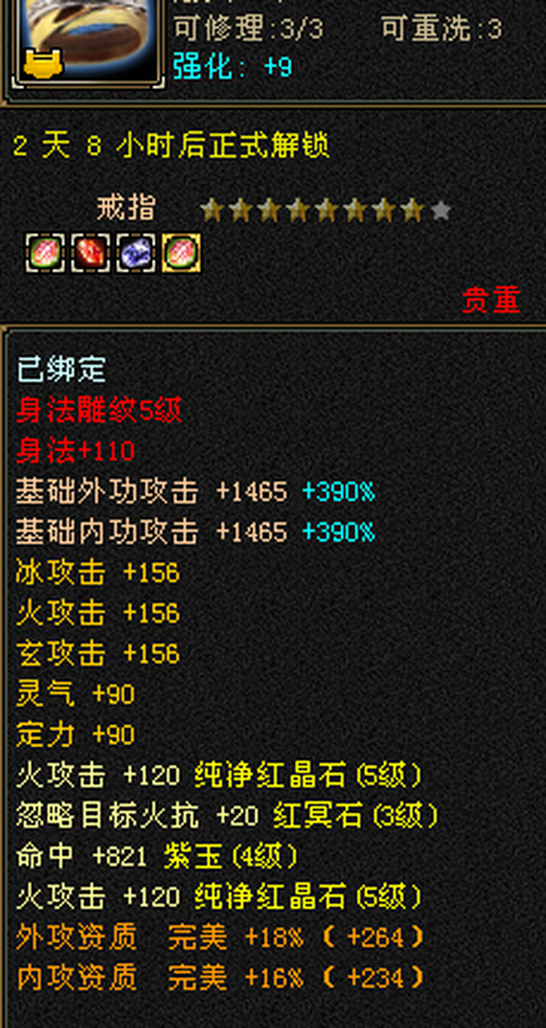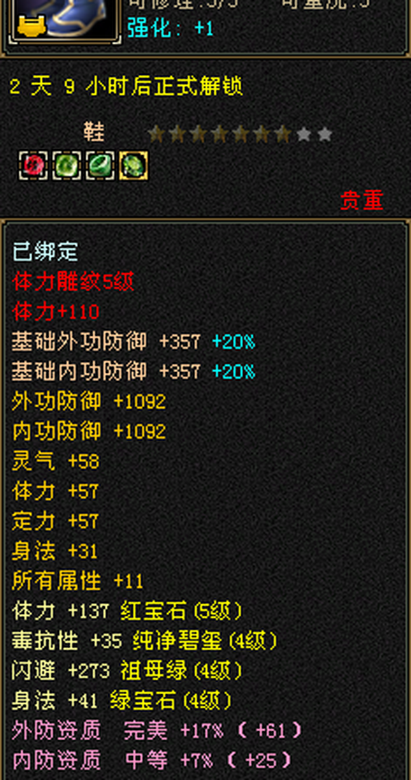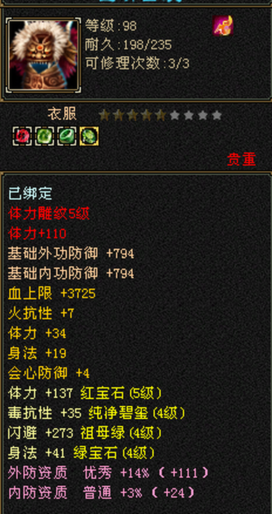 刚买的媳妇不让玩了,新时装武器都有,5属5体5命5雕毒抗280,石头打满,就差慢慢白嫖