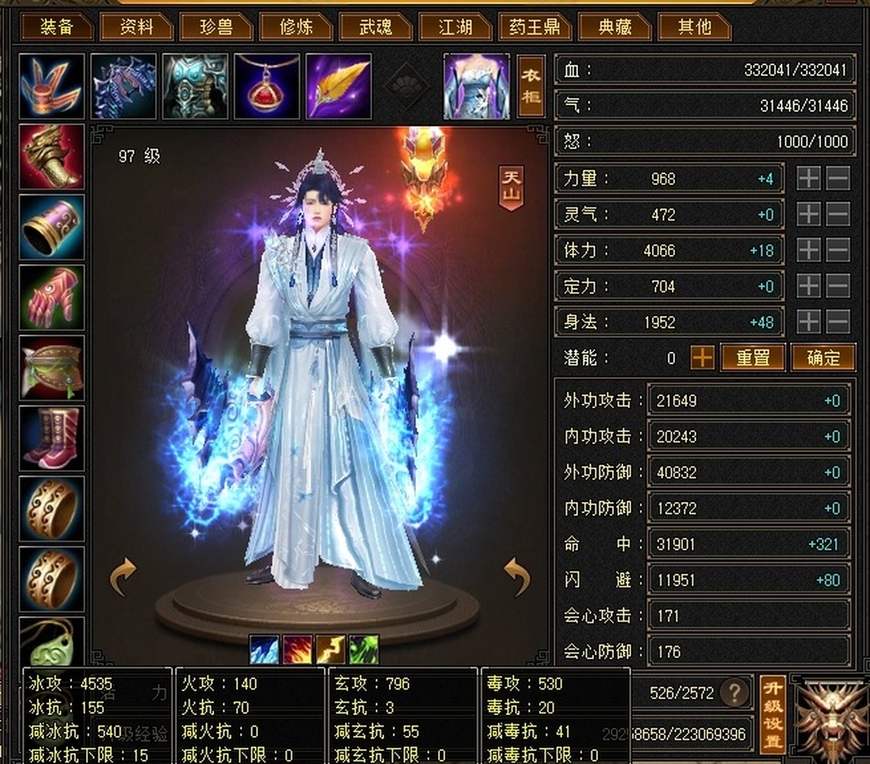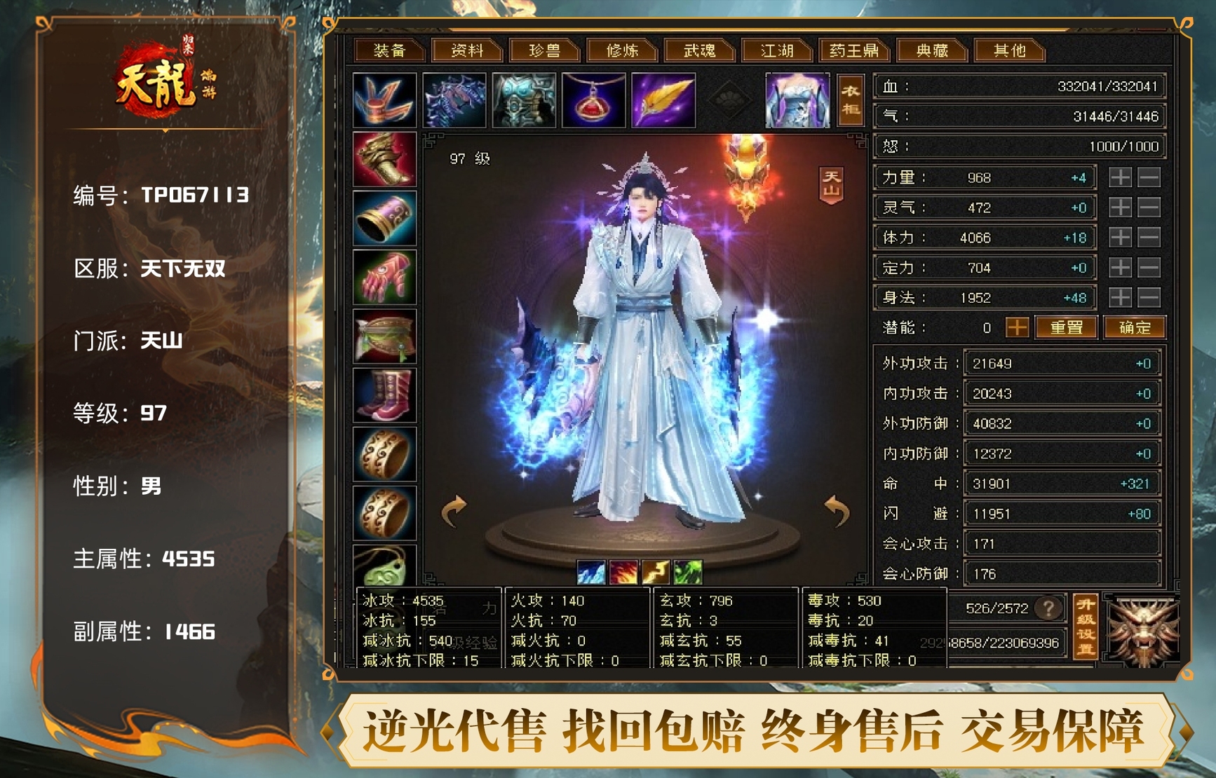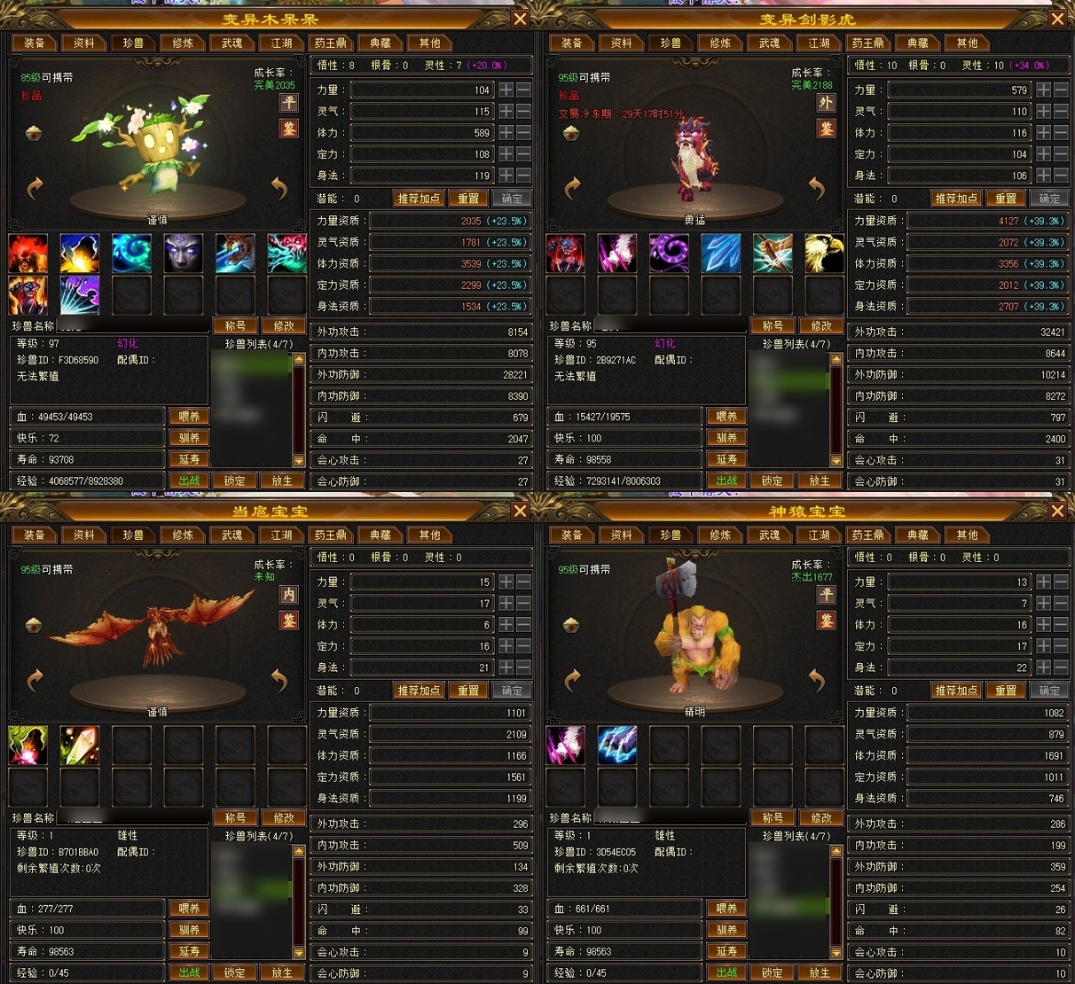 4535属 6体6属7雕 一个附体胚子双10外功宝宝 还有双8平衡木呆呆 号上还有1.7w元宝诚心买找客服谈价