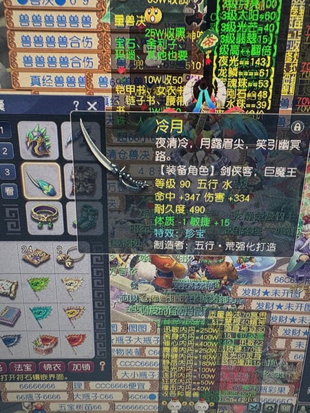 全满 超帅光膀子化生、有鲲有彩驴、有宝宝修、带任务装备,马上满慈悲带9层风带 葫芦等…通杀一切副本、退游了