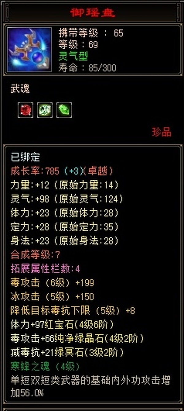 69成品星宿 附体BB出战BB全 裸面板主属性1780副属性704 满减抗 有下限。4颗5级石头 4级命中全