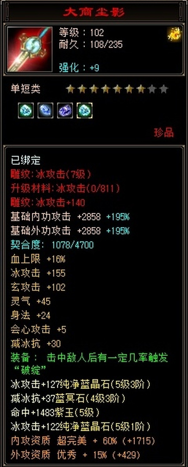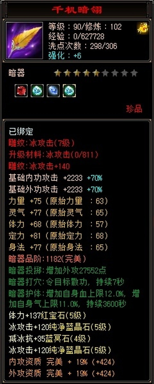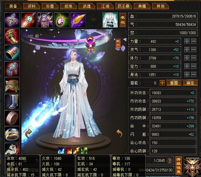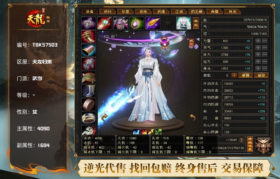【TBK57503】 | 主属性:4090 | 等级:102 | 副属性:1694 | 女 | 武当 | 主冰攻 【逆光终身包赔五折】