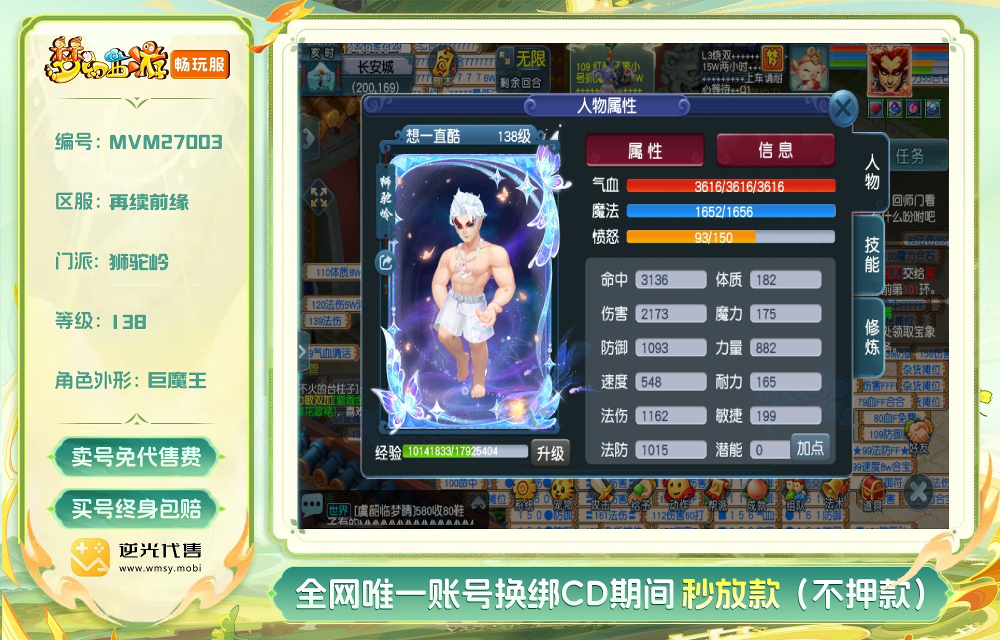 空号 149飞升狮驼,8鲲(每天更新八次无损复活),电驴,光膀子,豪宅。宝宝全满丹。强身120,冥想100,人修24.22.15.21.20。 宝宝修20.13.20.10。