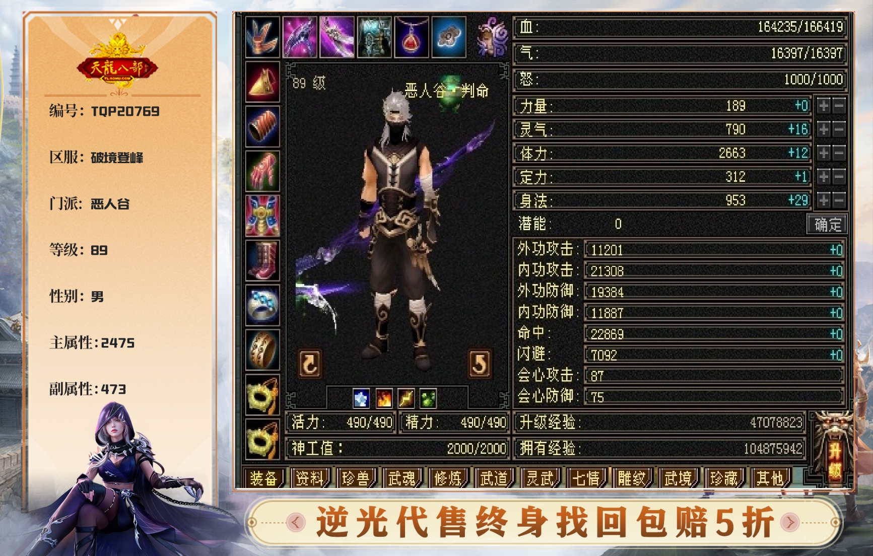 卡88成品双修,满5属5体5雕,2.2w命中,17w血!挥泪大甩卖~